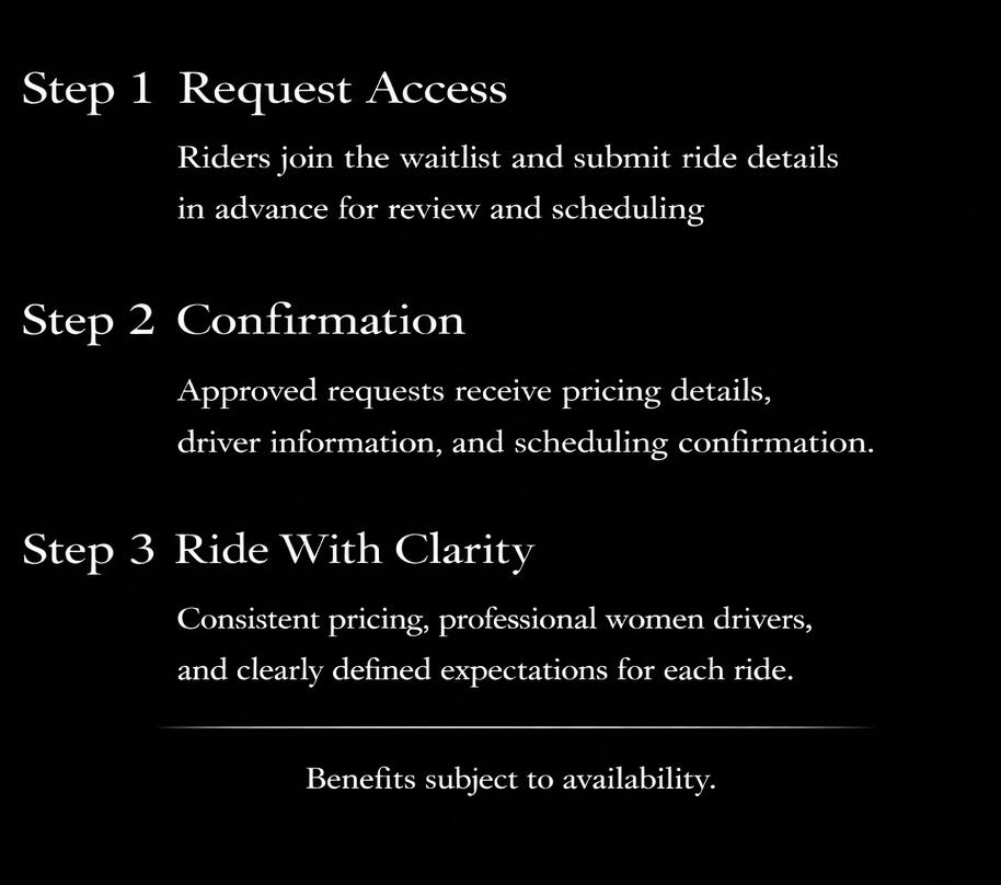 Whether you’re joining the waitlist, booking a ride, or expressing interest in driving, you’re becoming part of something meaningful — a transportation experience thoughtfully created with women in mind.Every ride contributes to a stronger Memphis.