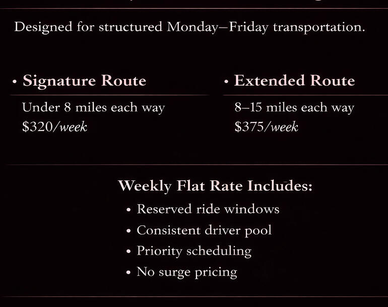 Designed for structured Monday-Friday transportation.